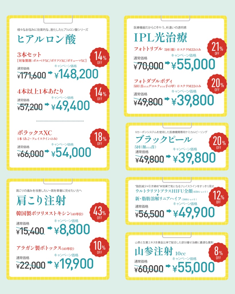 痩身、小顔治療、二重術、クマ取りなど幅広い施術を取り扱っております。