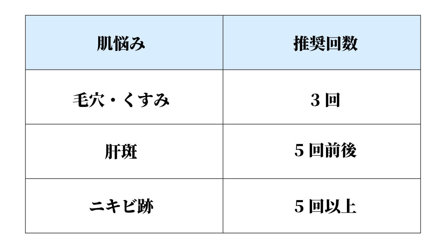 特に毛穴やニキビ跡などの凹凸改善は、複数回の施術で差が出やすくなります。