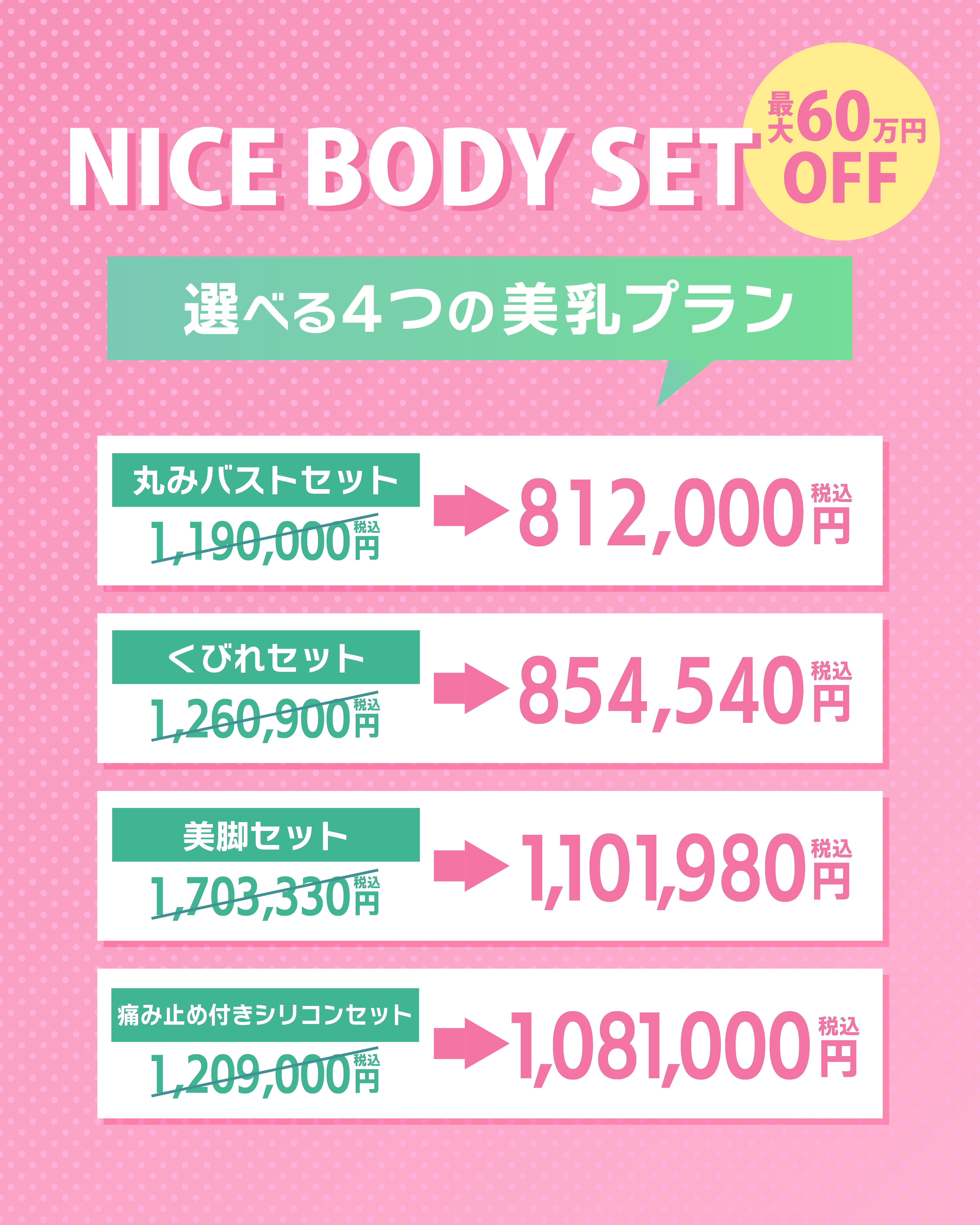 【最大60万円OFF】NICE BODY SET 選べる4つの美乳プラン🎉