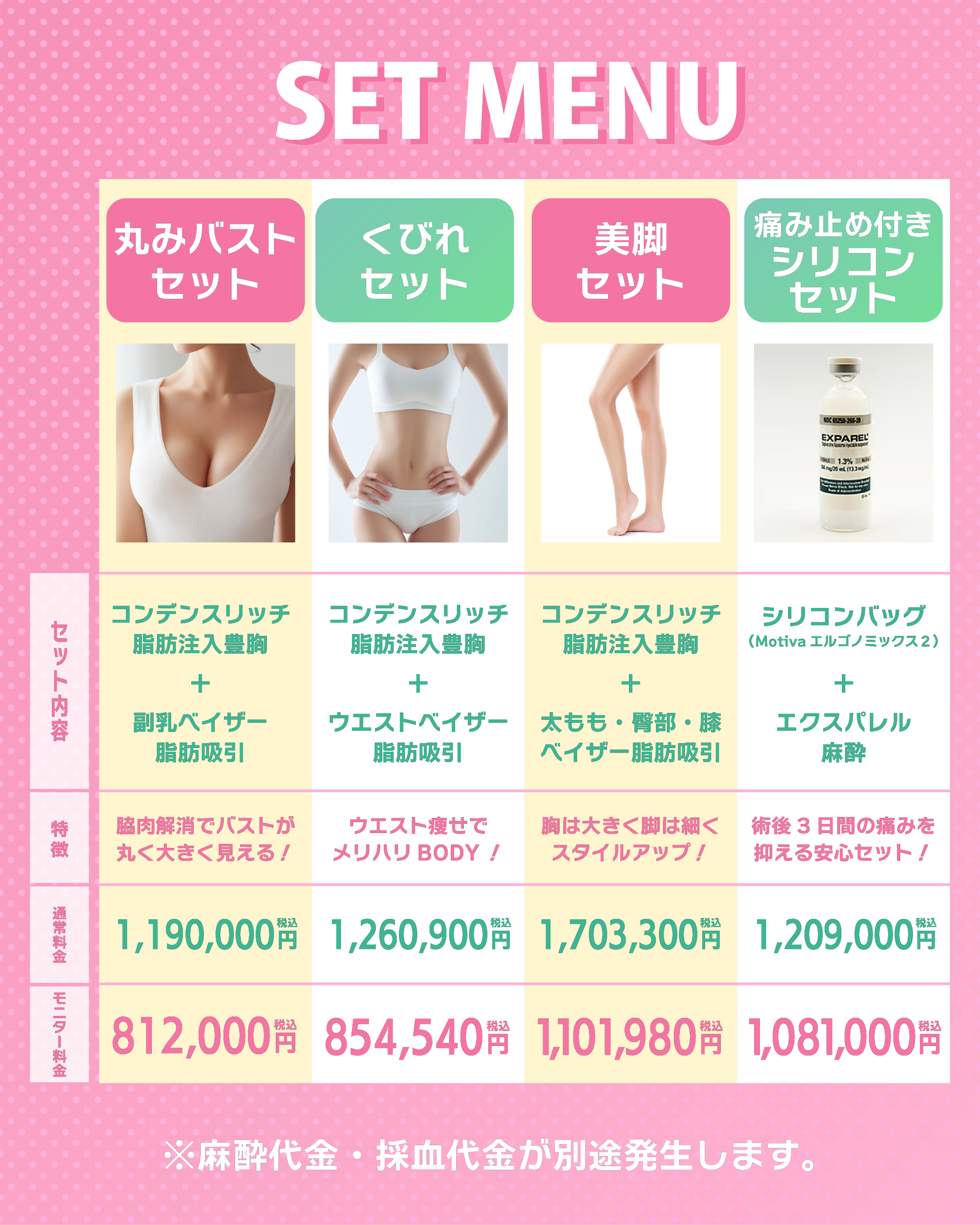 さらに、術後72時間痛みを抑える「エクスパレル麻酔」をセットにしました。