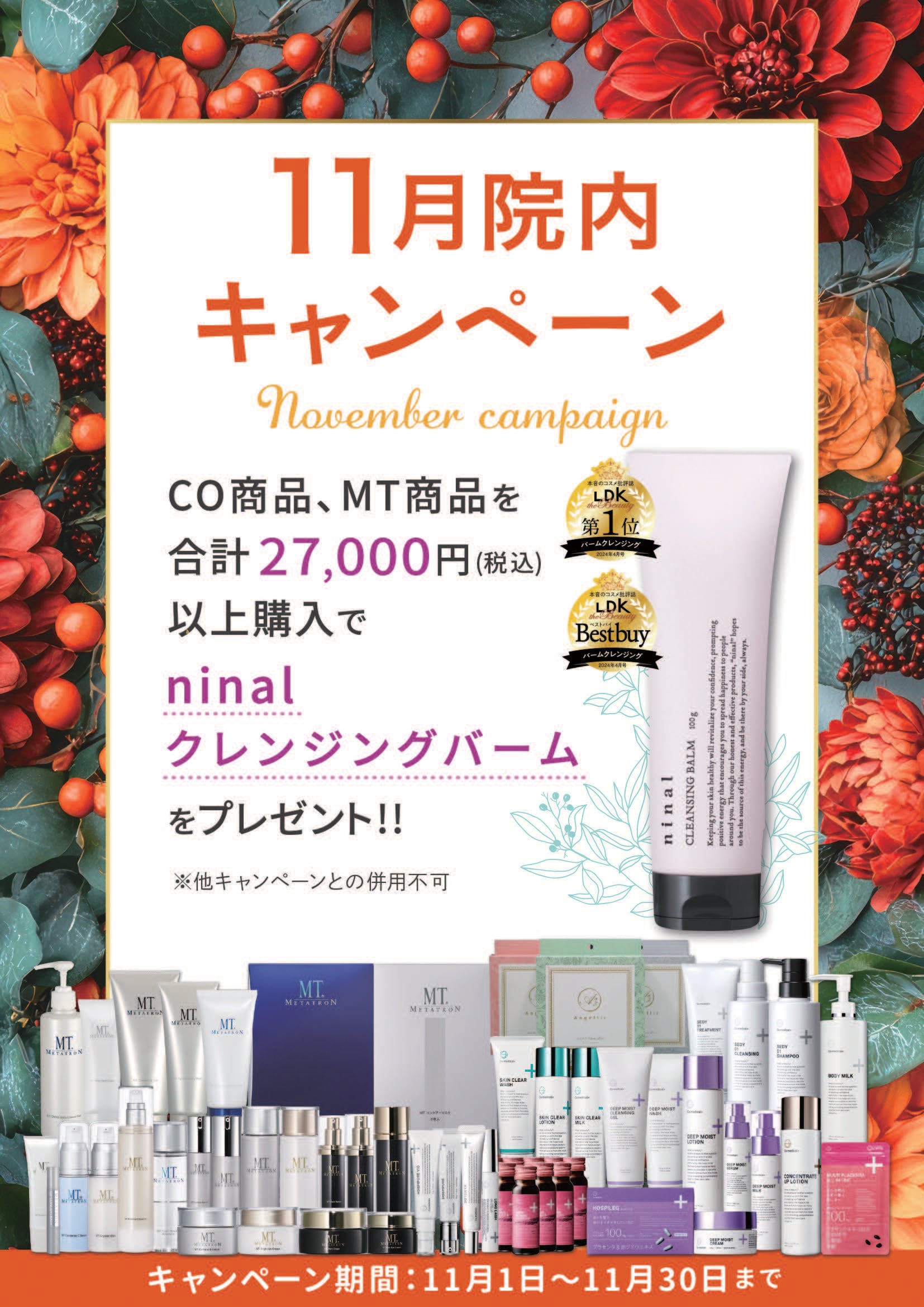 CO商品、MT商品を合計2万7千円(税込)以のご上購入でninal クレンジングバームをプレゼント🎁