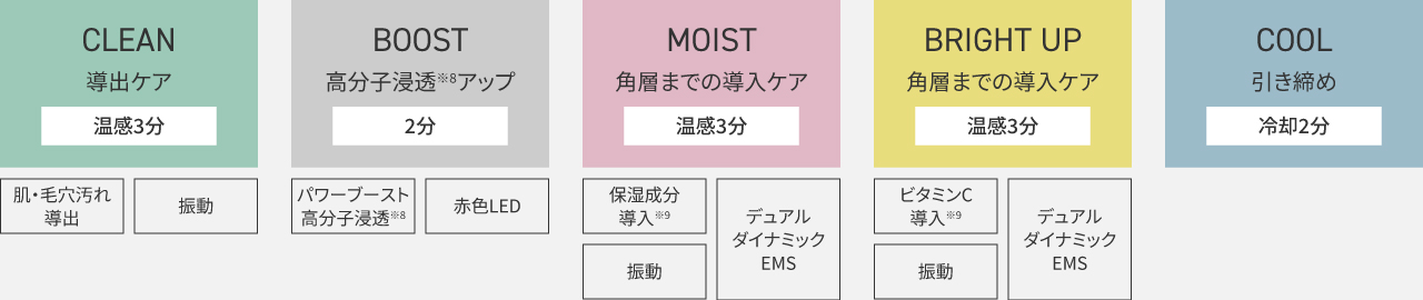 2種類の波形の組み合わせで緩急をつけた独自のプログラムで複雑な表情筋に効率的にアプローチしてくれます!