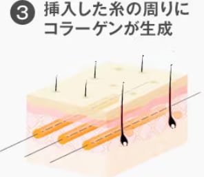 糸にボトックス成分が配合されているため、筋肉の動きによって生じるシワを持続的に緩和する働きがあります。