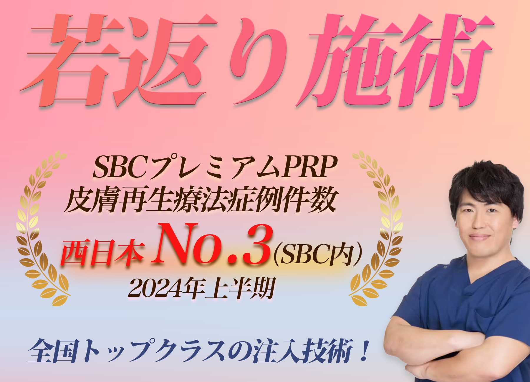 プレミアムPRP皮膚再生医療法西日本3位!(2024年上半期SBC内症例数)
