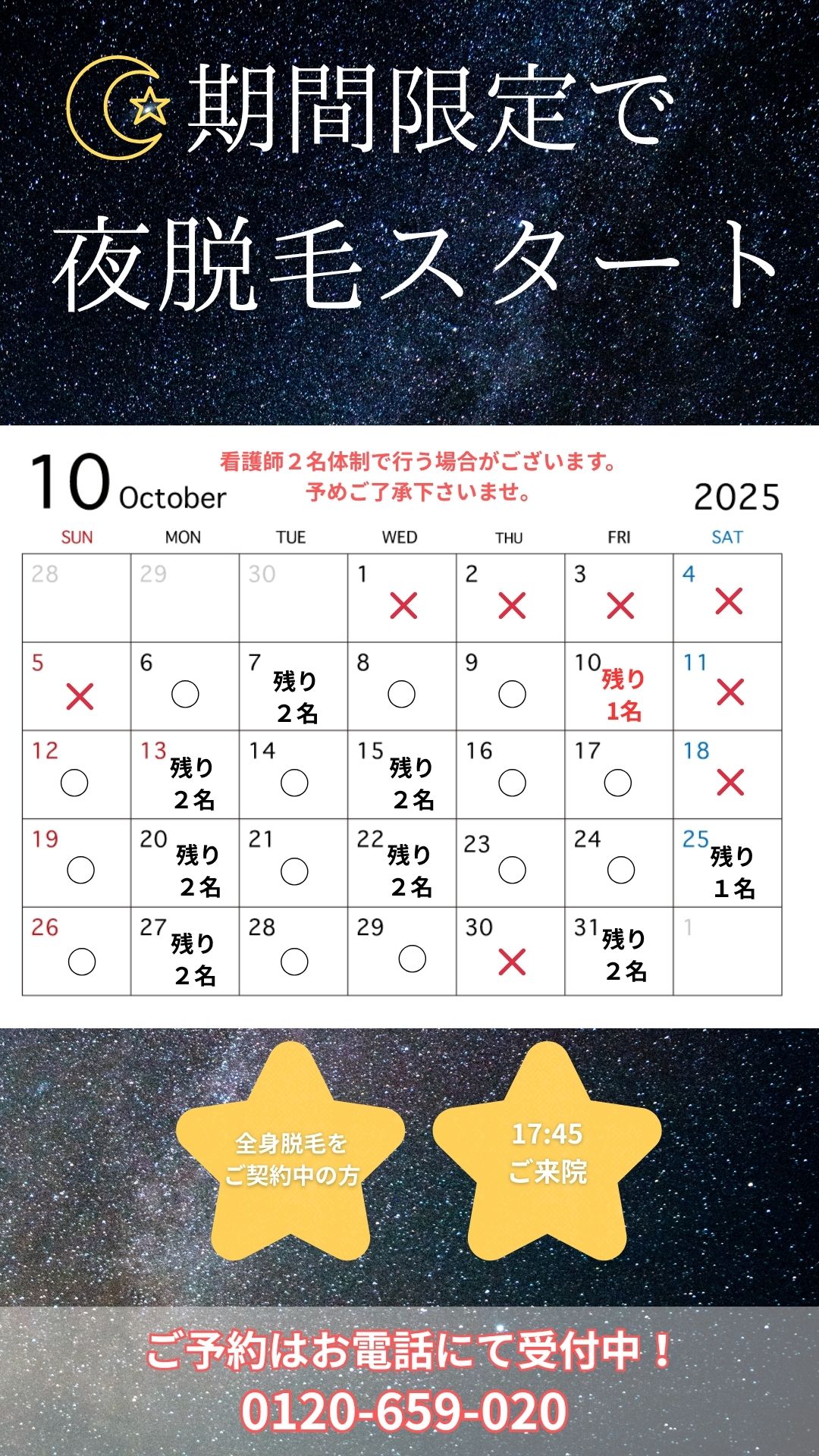 【期間限定】夜脱毛空き情報⭐️🌙