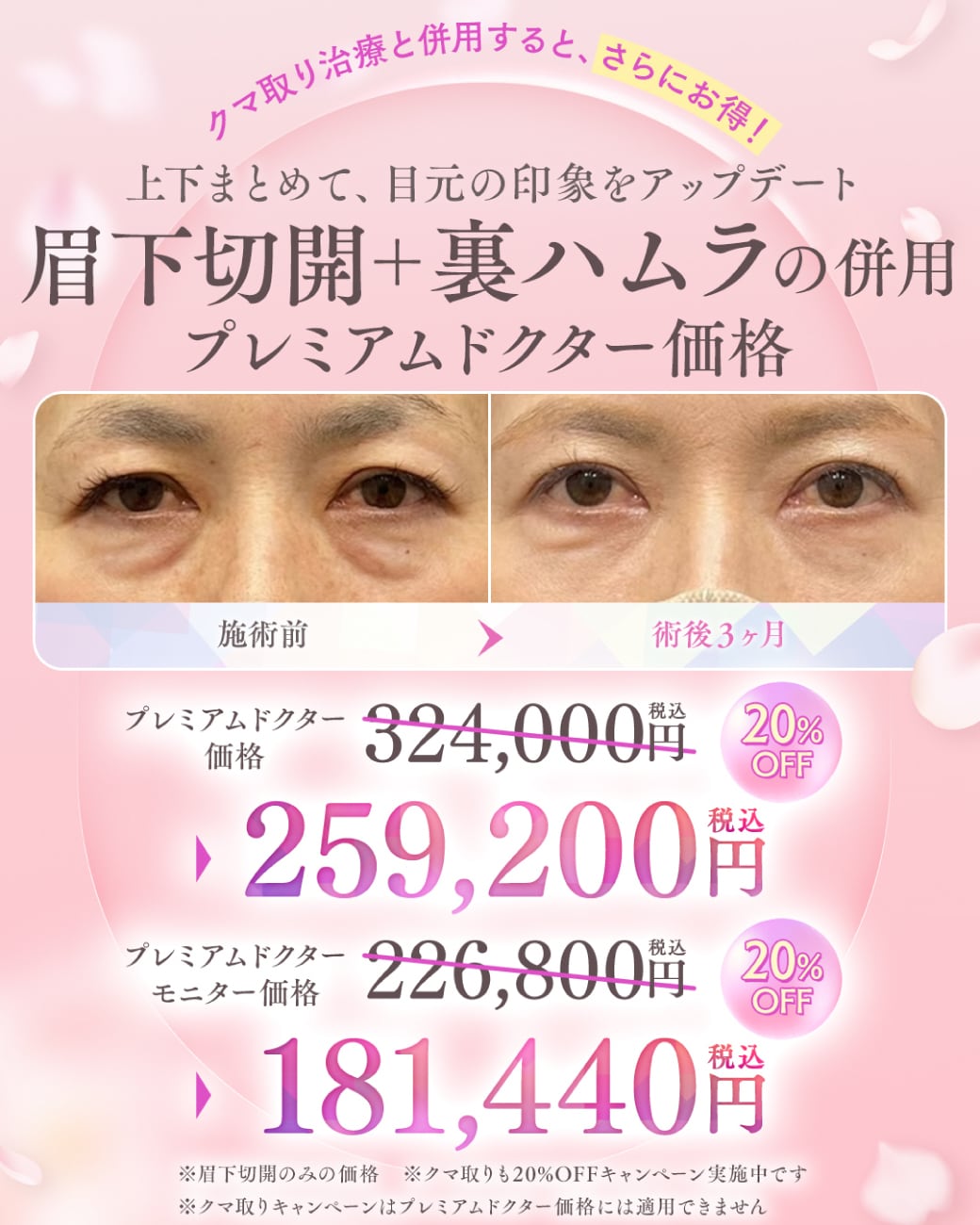 ・【4月15日まで】眉下切開×裏ハムラ法が20%OFF✨