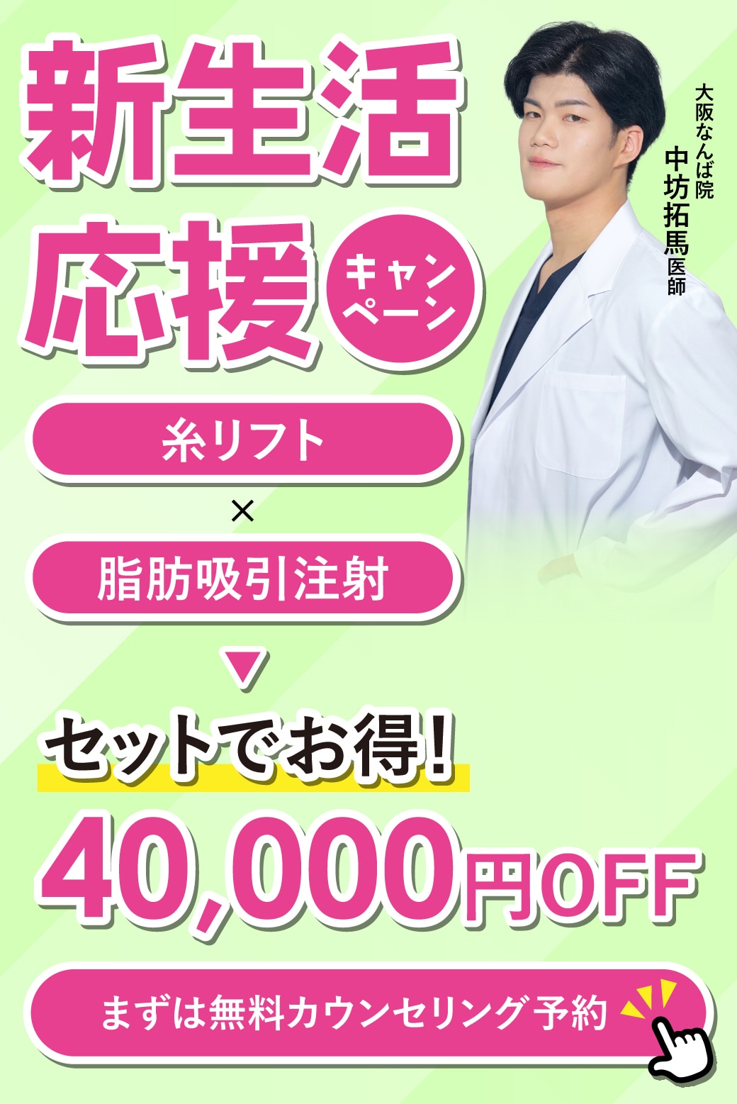 大阪なんば院で人気の美容施術が4月限定で最大21%OFFで受けられます✨