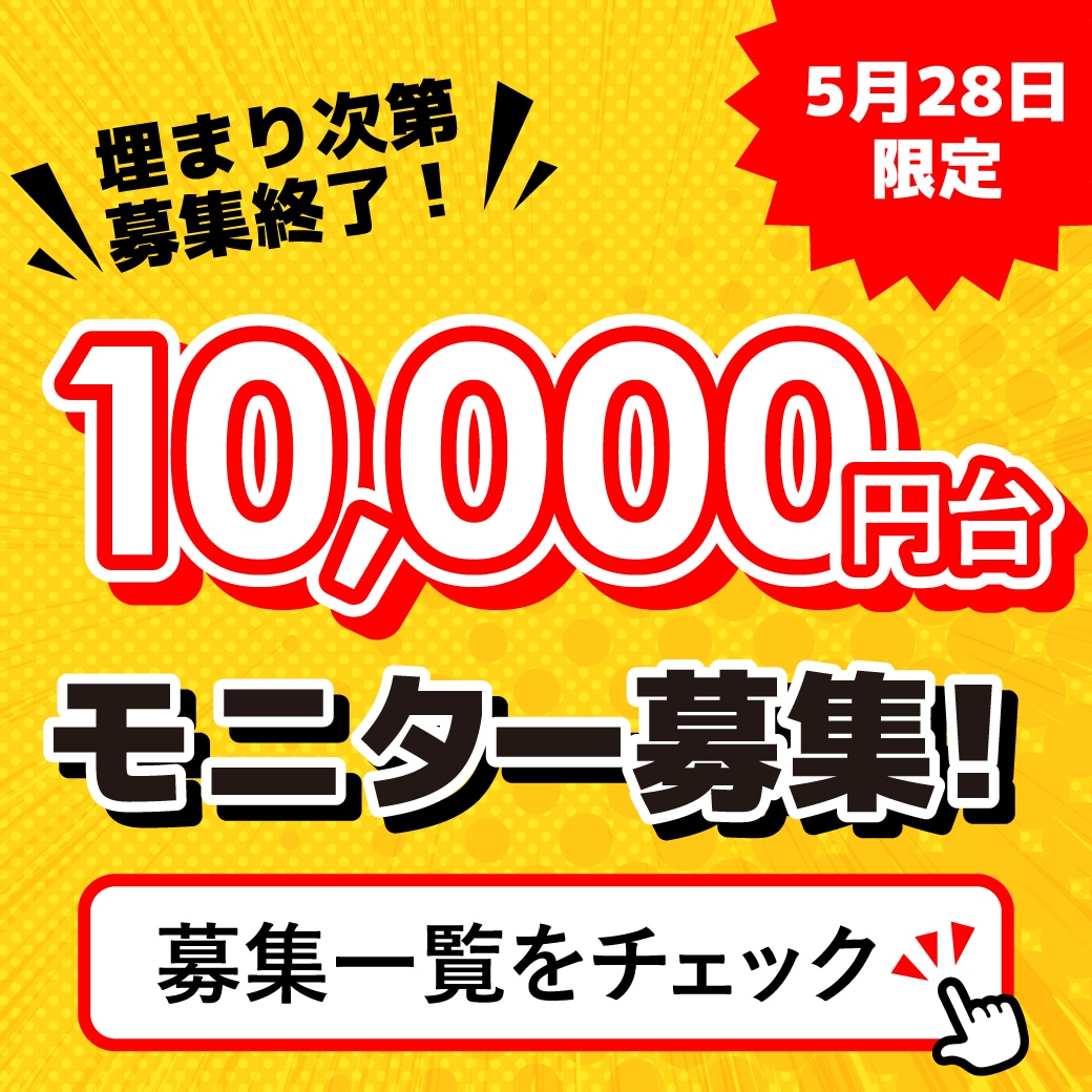 こちらのモニターは大変人気の為予告なく募集を終了する場合がございます。