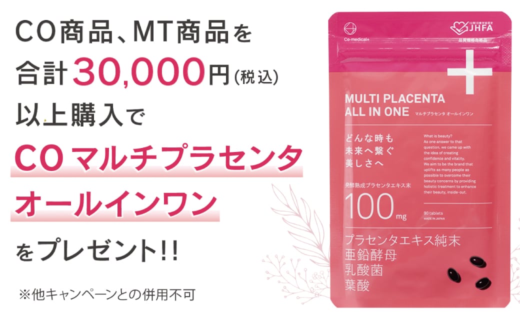 【院内キャンペーン】人気のCO商品、MT商品ご購入で「COマルチプラセンタオールインワンプレゼント」🎁