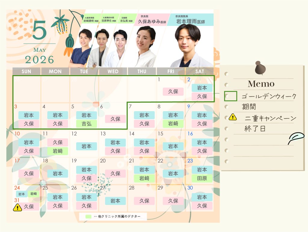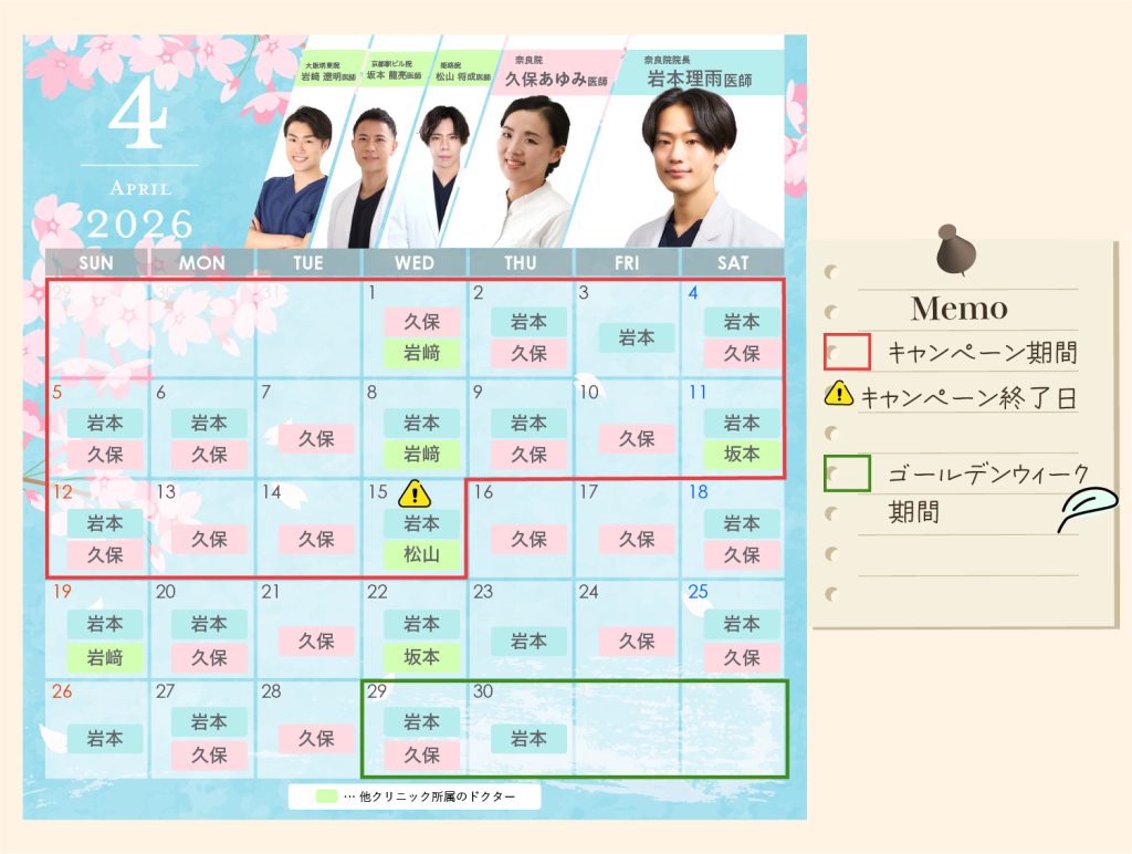 クリニック案内 奈良県のクリニック 湘南美容クリニック 奈良院 【4月・5月医師の出勤日】キャンペーン終了期限まとめ✨