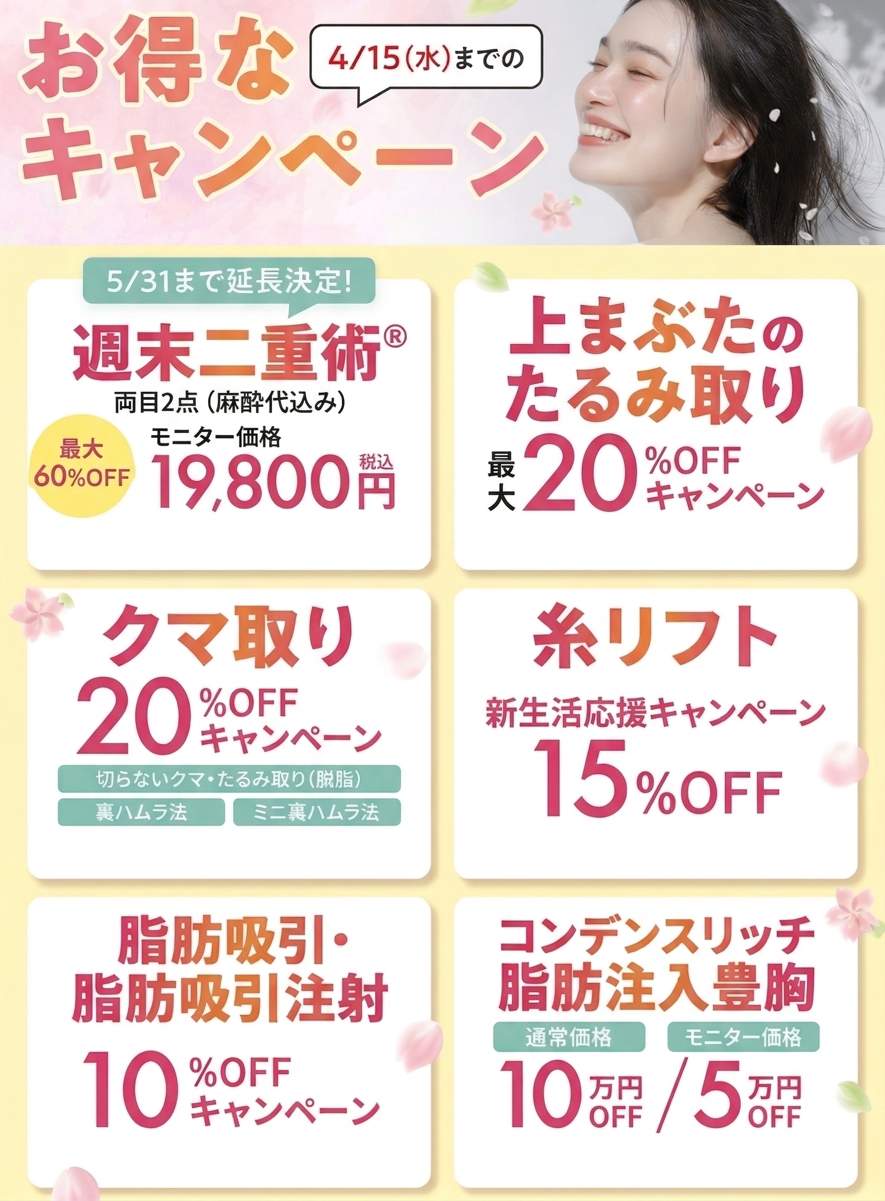 クリニック案内 新潟県のクリニック 湘南美容クリニック 新潟院 新生活応援!キャンペーン🌸