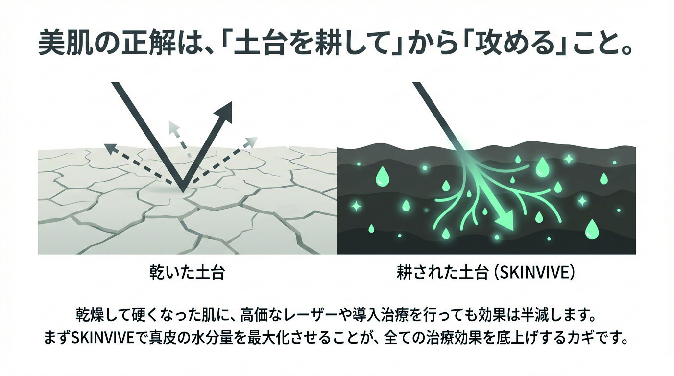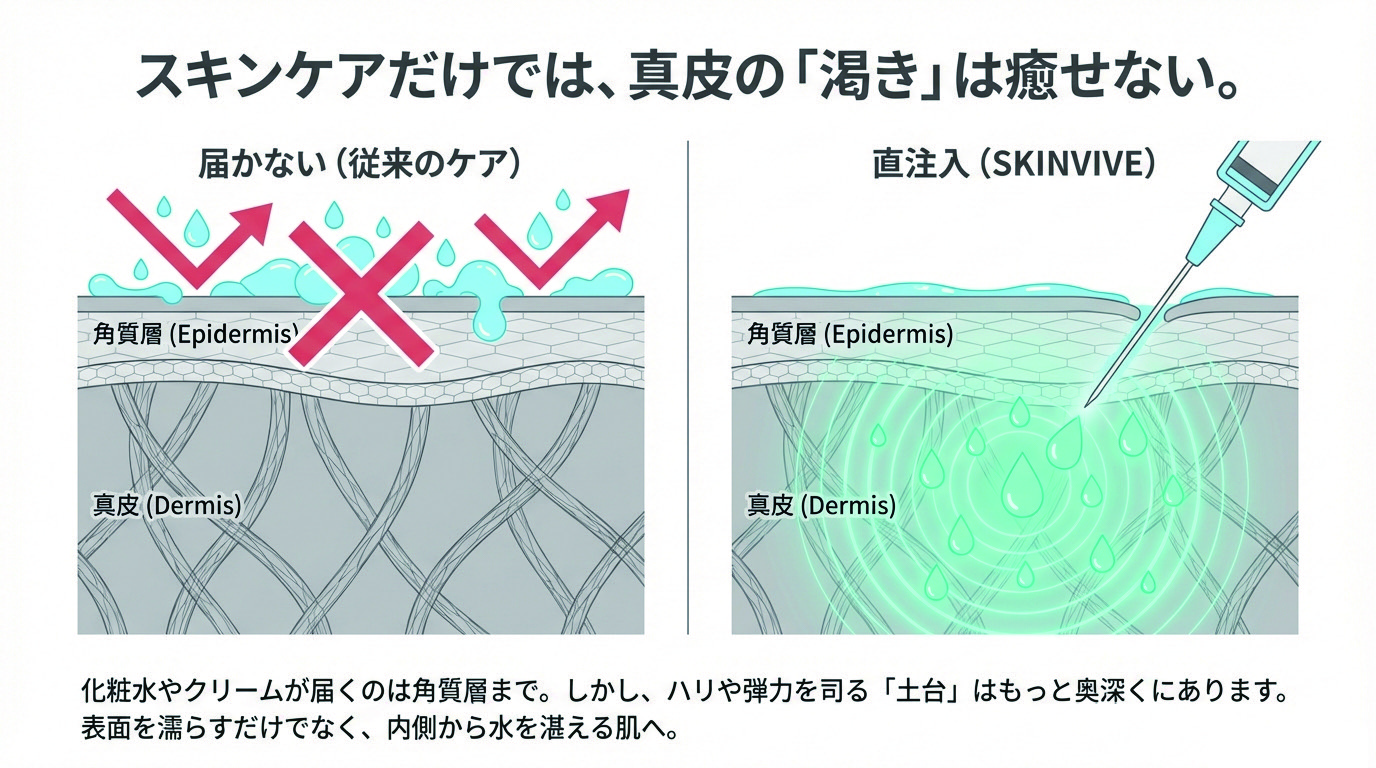 ✅ 根本改善: スキンケアでは届かない「真皮」の保水構造を再構築!