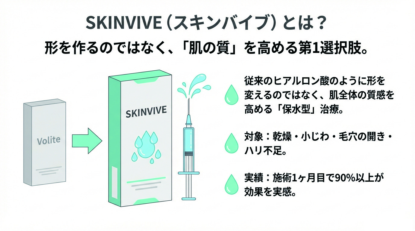 今、話題の『SKINVIVE(スキンバイブ)』なら、スキンケアでは届かない肌の土台から潤いをチャージ💧9ヶ月も続く高コスパな最新治療で、あなた史上最高のツヤ肌を目指しませんか?まずは無料カウンセリングへどうぞ🎀