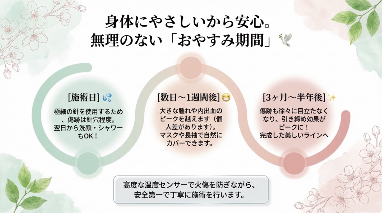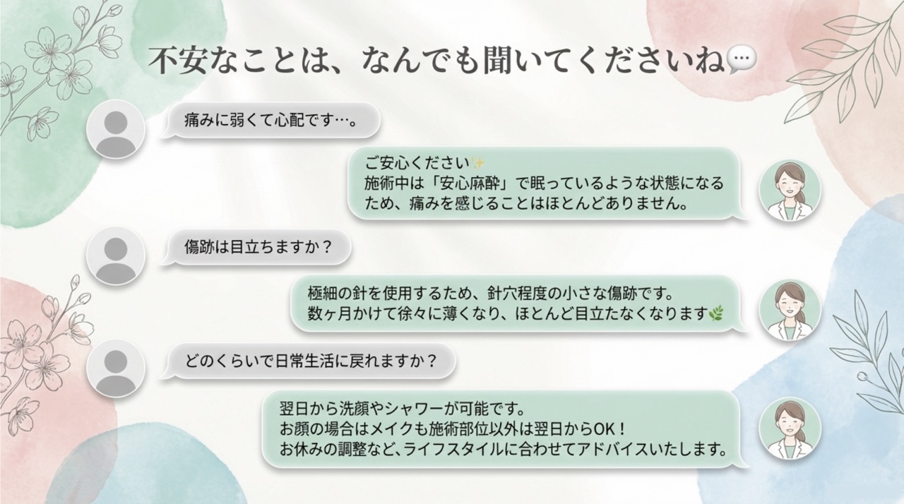 - ✨ 傷跡は針穴程度: 極細の針だから安心