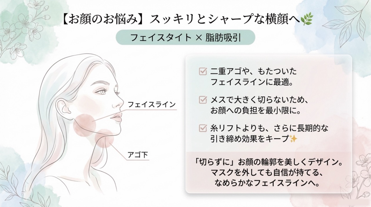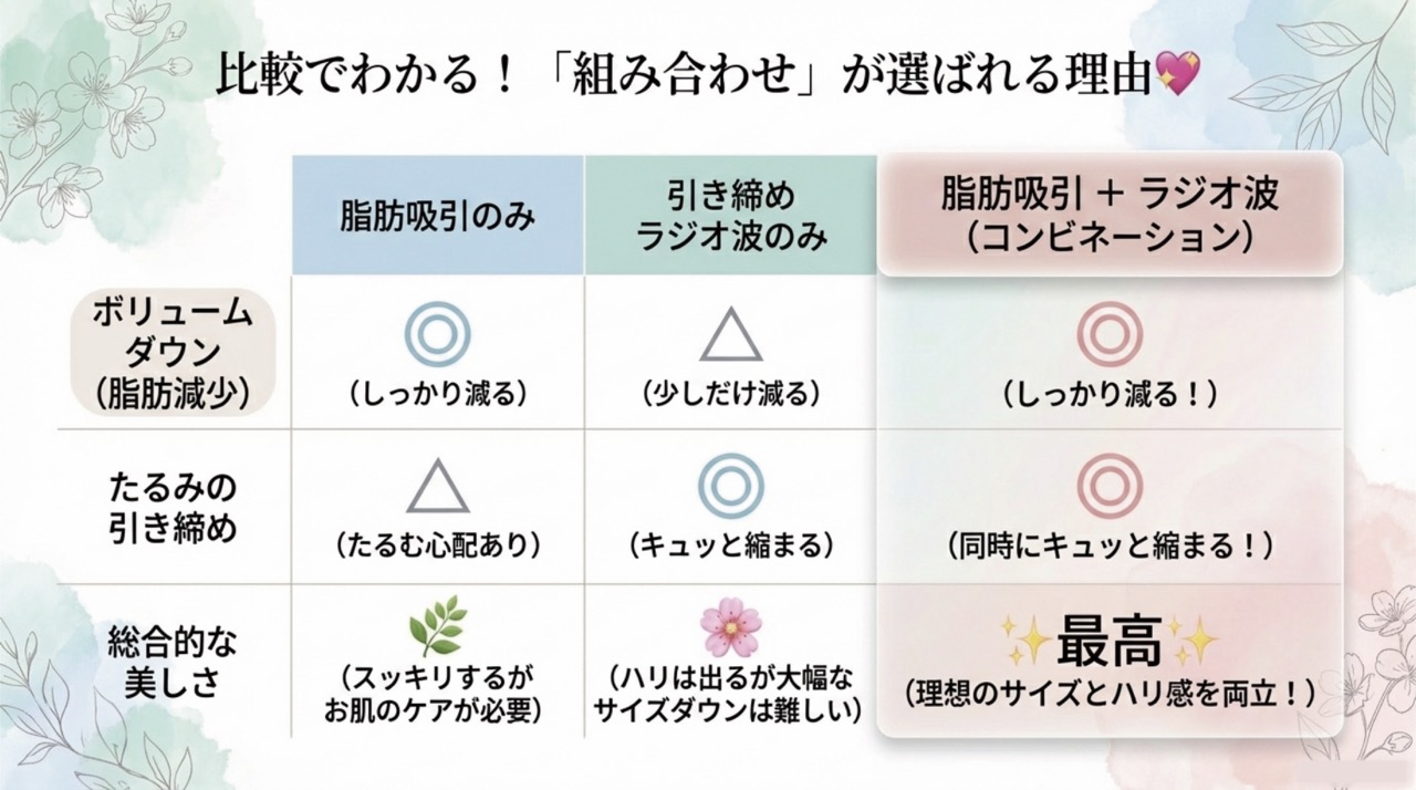 脂肪吸引でボリュームを減らし、エンブレイスRFでお肌をキュッとタイトニング。
