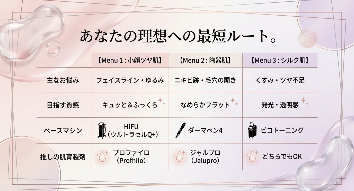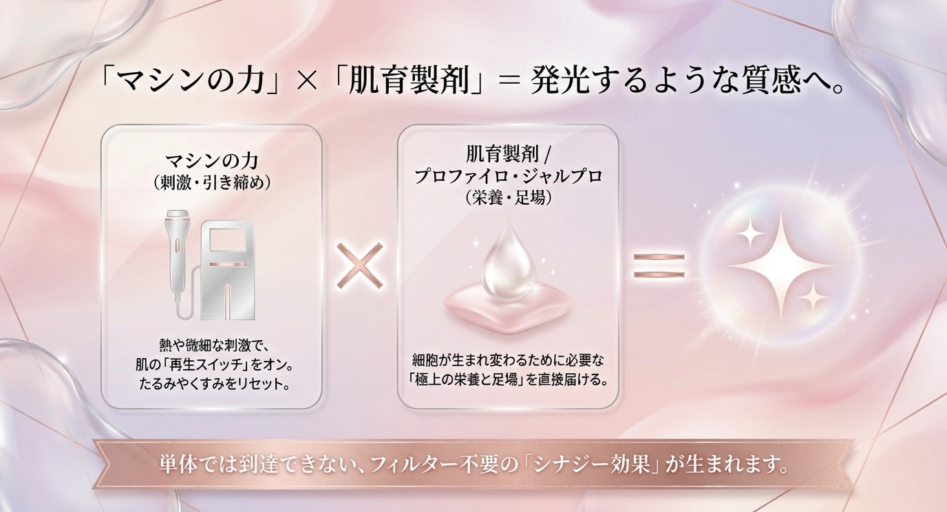 細胞の足場を整えるプロファイロやジャルプロは、HIFUやダーマペンと組み合わせることで効果が最大化!