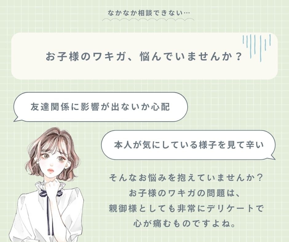 お子様のワキガの問題は、親御様としても非常にデリケートで心が痛むものですよね。