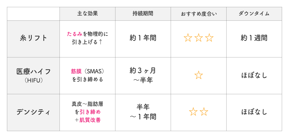 一人ひとりの骨格・たるみ・肌状態を見極めたうえで、医師とじっくり相談しながら、今のあなたに本当に必要な治療を見つけていきましょう。