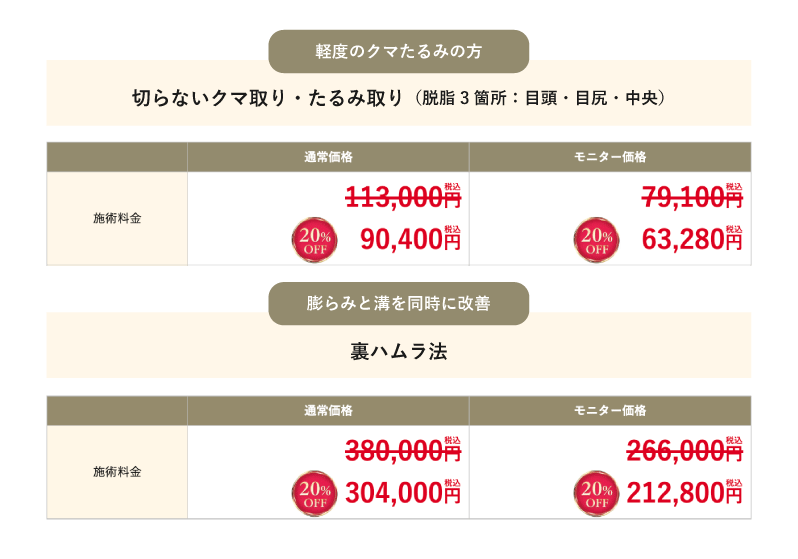 ✅ 目の下の切らないクマ取り(脂肪取り)や外科治療 ✅ 脂肪注入やヒアルロン酸