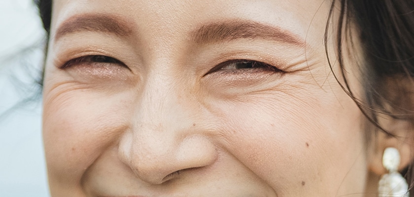 笑ったり、怒ったりするときに、表情筋と呼ばれる筋肉の収縮(緊張)によって眉間や、目尻、口の横、額などに現れます。本来は一時的なものですが、加齢などに伴って大ジワへと進行する恐れがあるので注意が必要です。