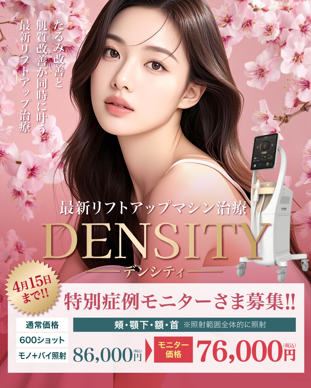 【35歳〜55歳限定】最新たるみ治療『デンシティ』症例モニターさま募集!1万円お得に究極のリフトアップを✨