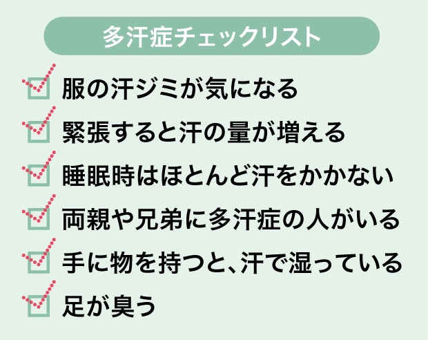 ●ポイント: 気温に関係なく、緊張やストレスなどでもドッと大量の汗をかいてしまうのが特徴です。
