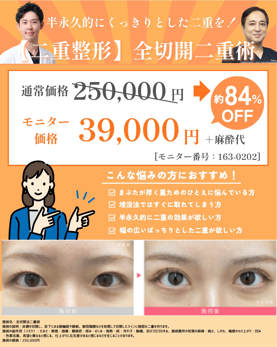 痩身、小顔治療、二重術、クマ取りなど幅広い施術を取り扱っております。
