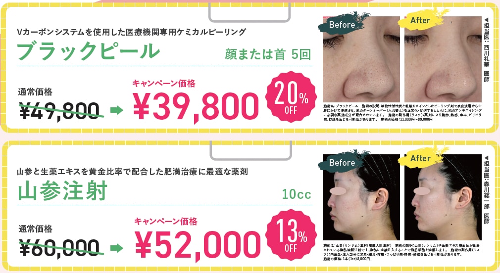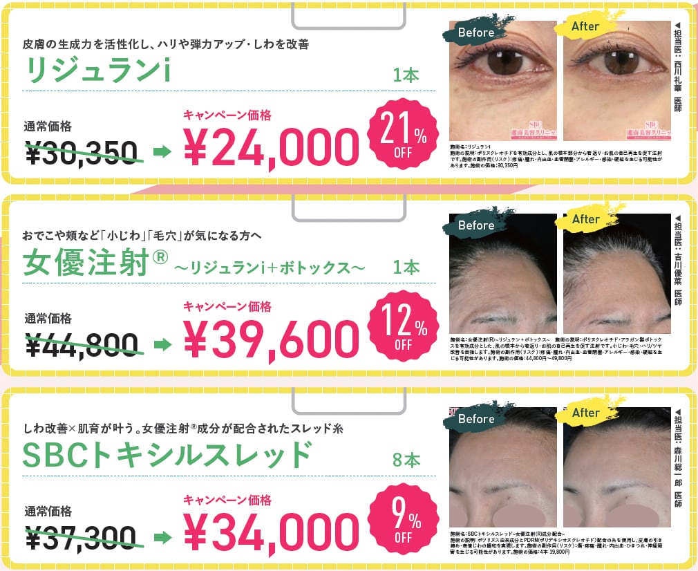 痩身、小顔治療、二重術、クマ取りなど幅広い施術を取り扱っております。