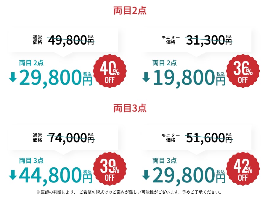 施術の価格:両目49,800円~74,000円