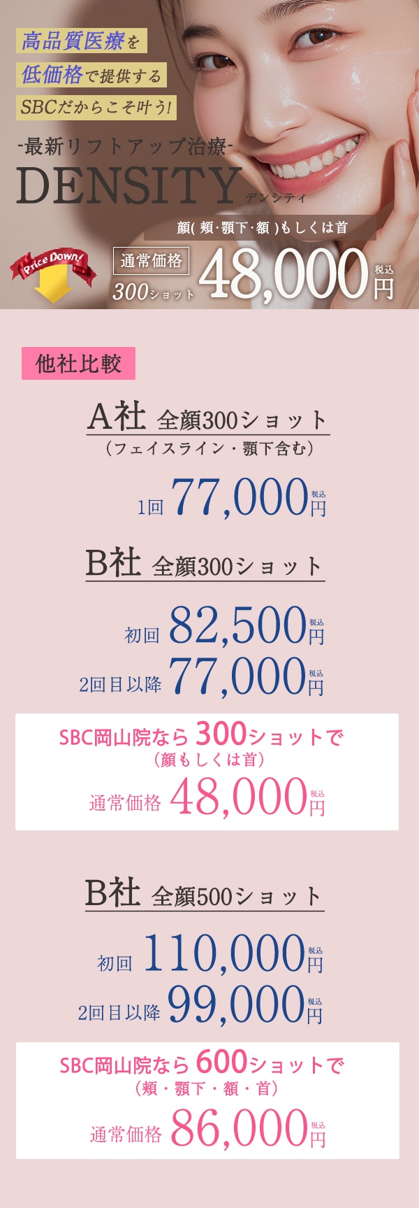 クリニック案内 岡山県のクリニック 湘南美容クリニック 岡山院 【比較】デンシティを、SBCなら「続けやすい価格」で。