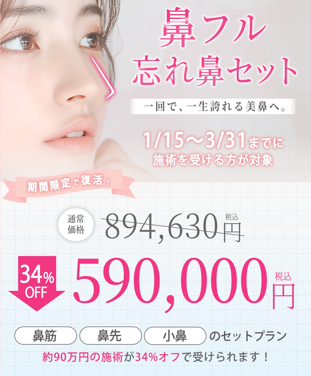 湘南美容クリニック岡山院では、大好評だった「鼻フル忘れ鼻セット」のキャンペーンを期間限定で復活いたします!