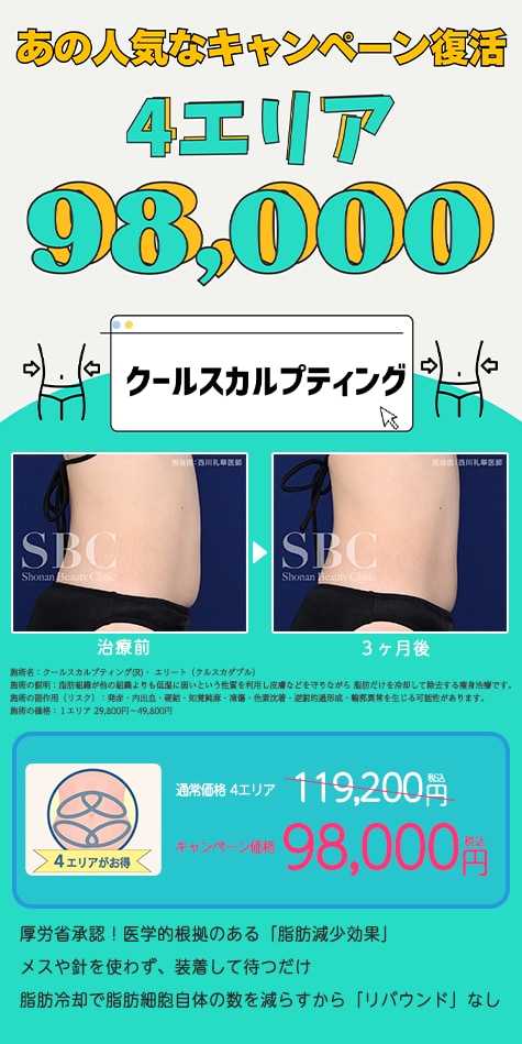 クルスカは、脂肪細胞を凍らせて排出する切らない脂肪吸引。リバウンドしにくく、気になる部分をピンポイントで狙い撃ちできます。効果の実感には数ヶ月かかるため、今からのスタートが絶好のタイミングです!厚着の季節のうちにこっそり仕込んで、夏にはスッキリとした自分に。まずはカウンセリングで、あなたに最適なボディデザインをご提案します。