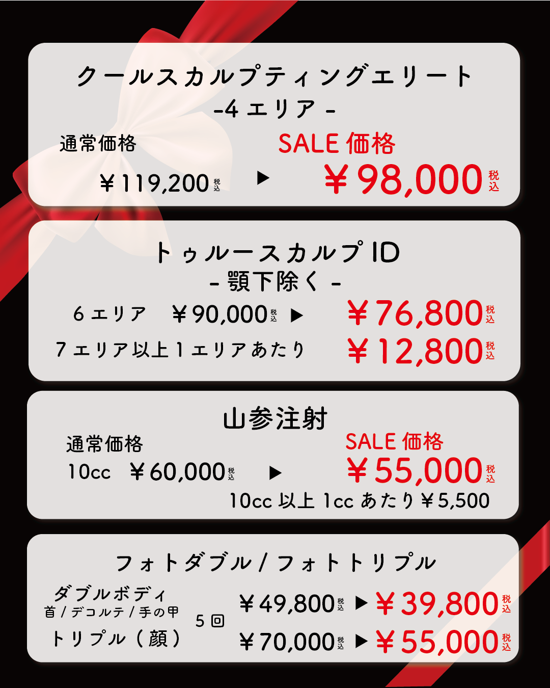 痩身、小顔治療、二重術、クマ取りなど幅広い施術を取り扱っております。