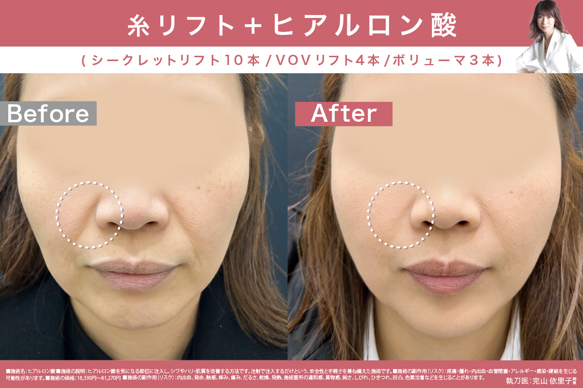 シークレットリフト10本/VOVリフト4本+ジュビダームビスタボリューマ3本(3cc)執刀医:完山 依里子医師