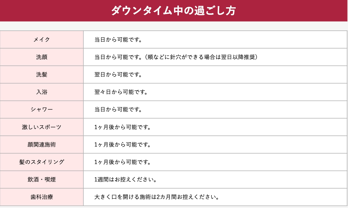 <糸リフトの主なダウンタイムの症状と術後経過>