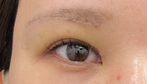 【施術の説明】眉の下のラインぎりぎりを切開し、たるんだまぶたを改善する施術です。