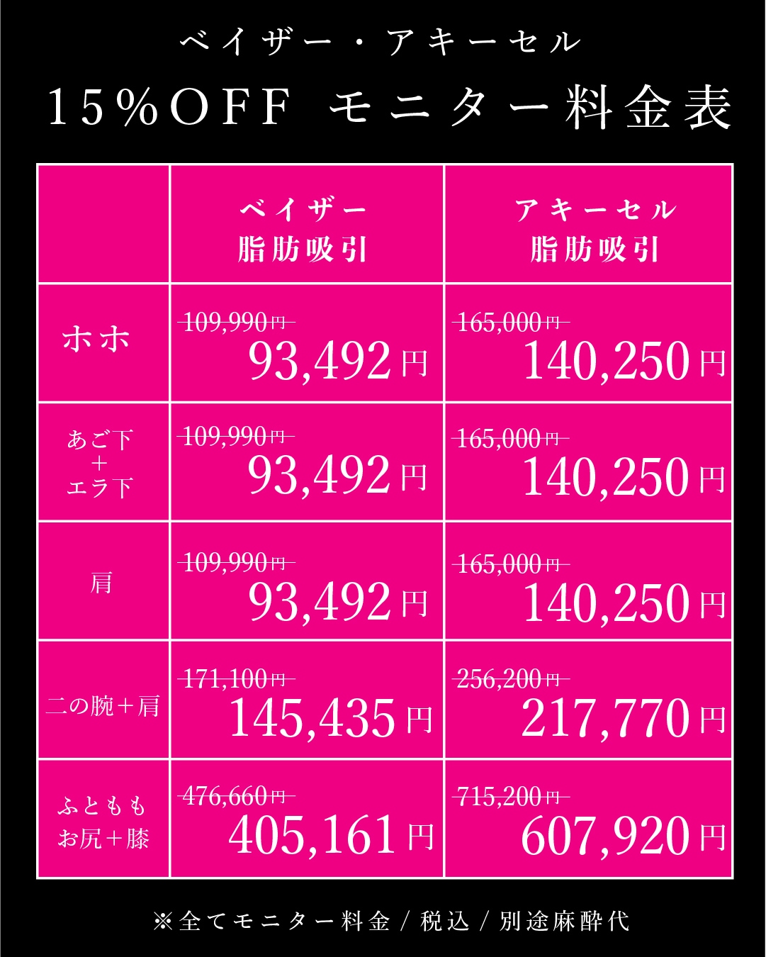 - 割引率: 脂肪吸引の施術費用から**15%OFF**