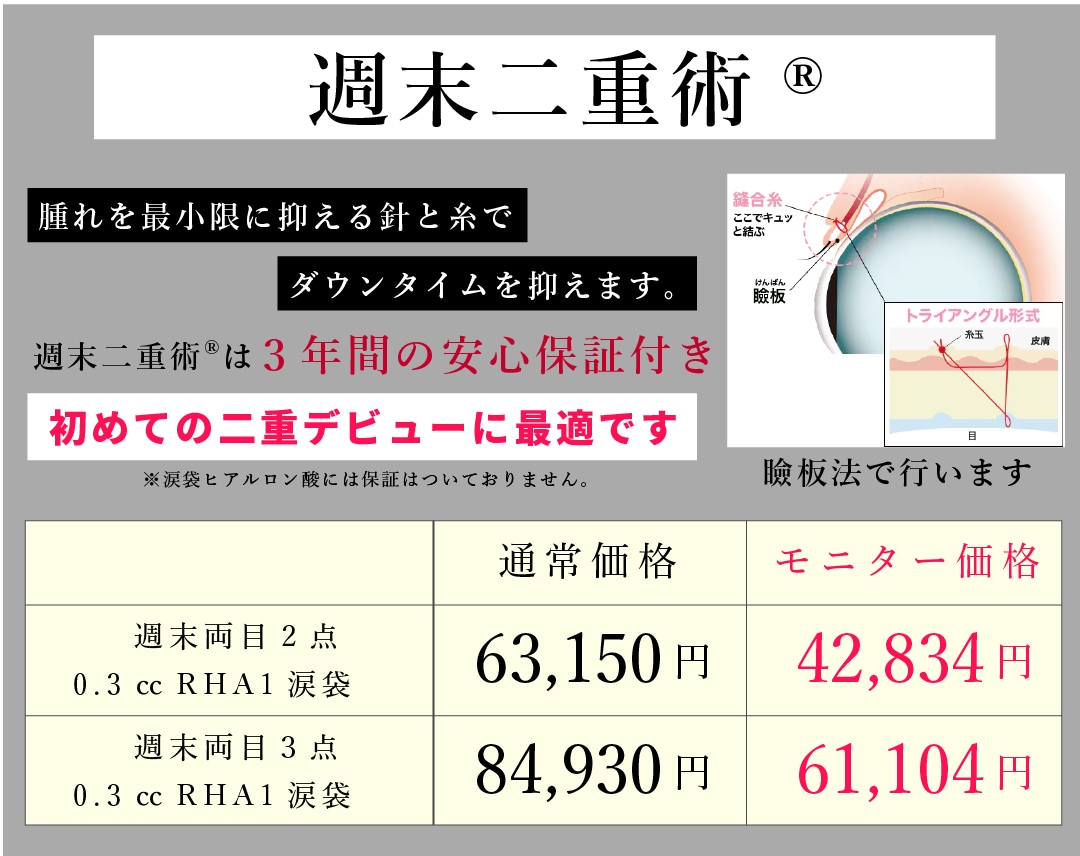 **【セットでお得!】** 週末二重術と涙袋ヒアルロン酸セットキャンペーン!可愛さを即アップデートしたい方は必見!大阪堺東院の光田先生のモニター募集情報も!