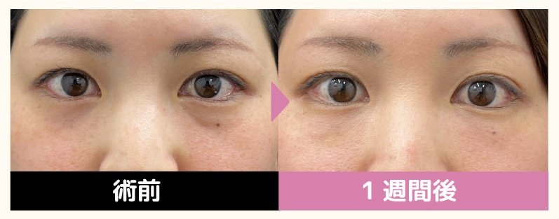 術前で最も目立っていた目頭から頬にかけての凹みが、ベビーコラーゲンの注入によって内側からふっくらと持ち上がりました。