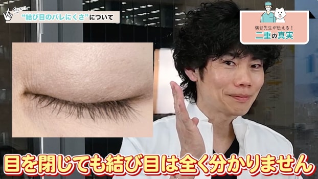 ですが、挙筋法ならではの技術として結び目をまぶたの裏に隠す『裏留め』で手術を行えば、