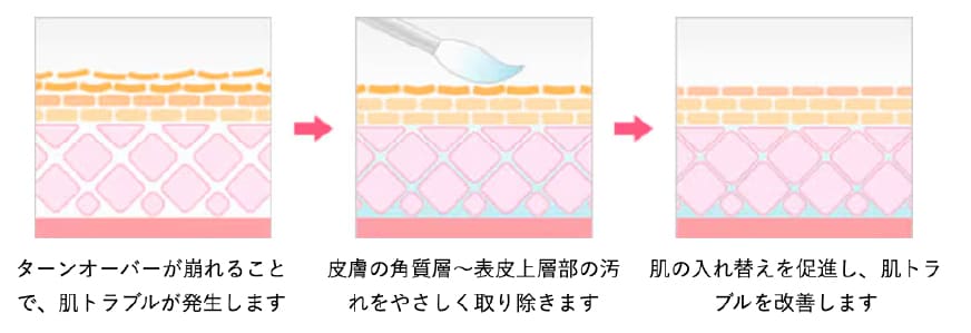 グリコール酸や乳酸で優しく代謝を促す「ケミカルピーリング」と、