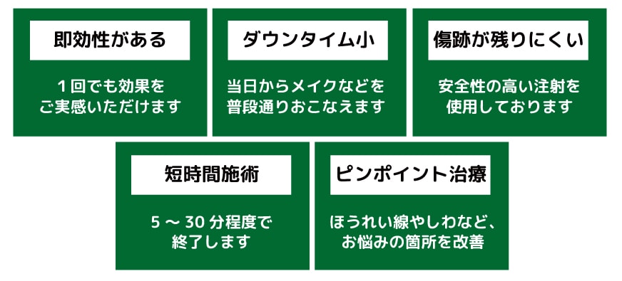 ほうれい線、しわ、たるみ改善幅広いお悩みに