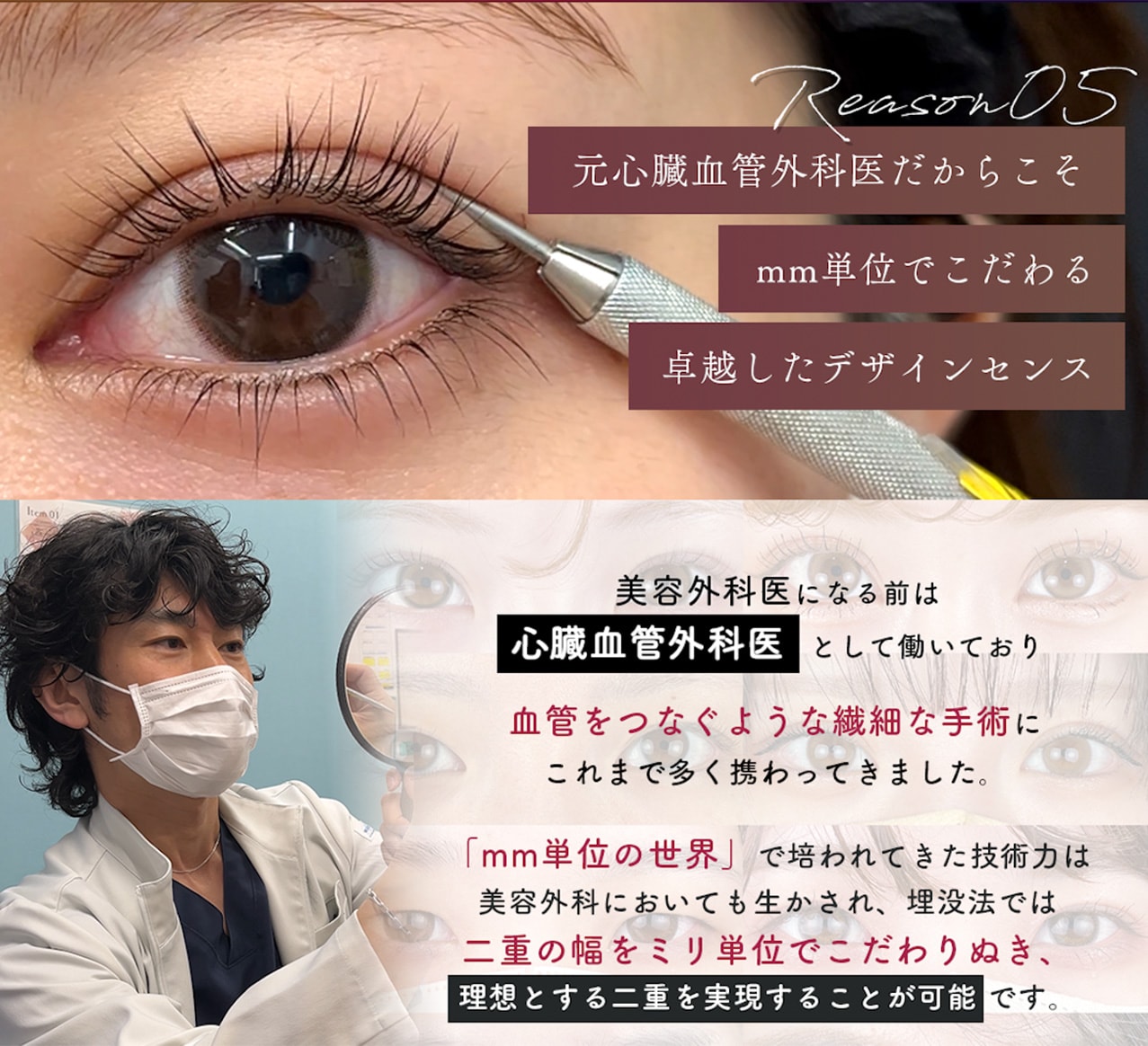 mm単位の世界で生きてきたからこそ、二重幅やデザインにはこだわりが強く、センスは卓越しています。
