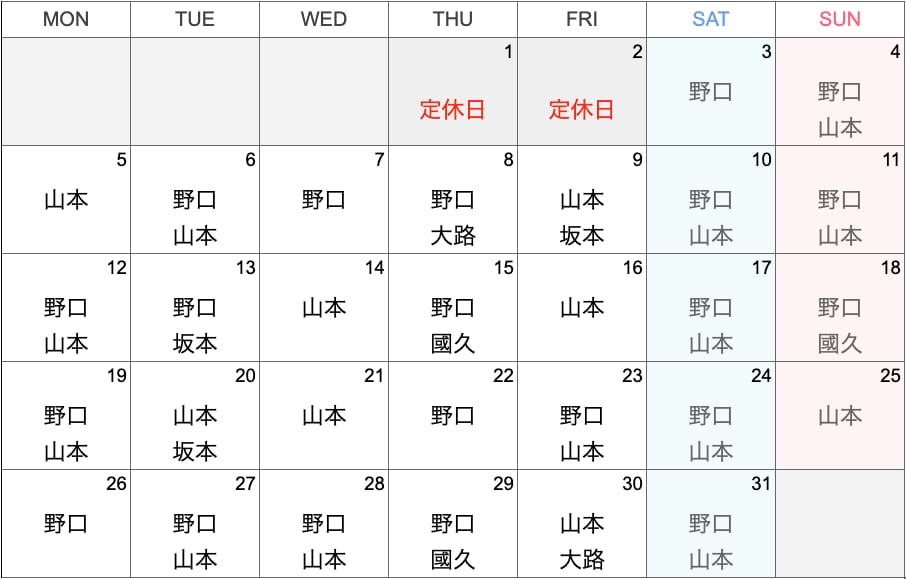 AM10:00~PM7:00 予約制 ※年中無休(※1/1.2のみ休診) |