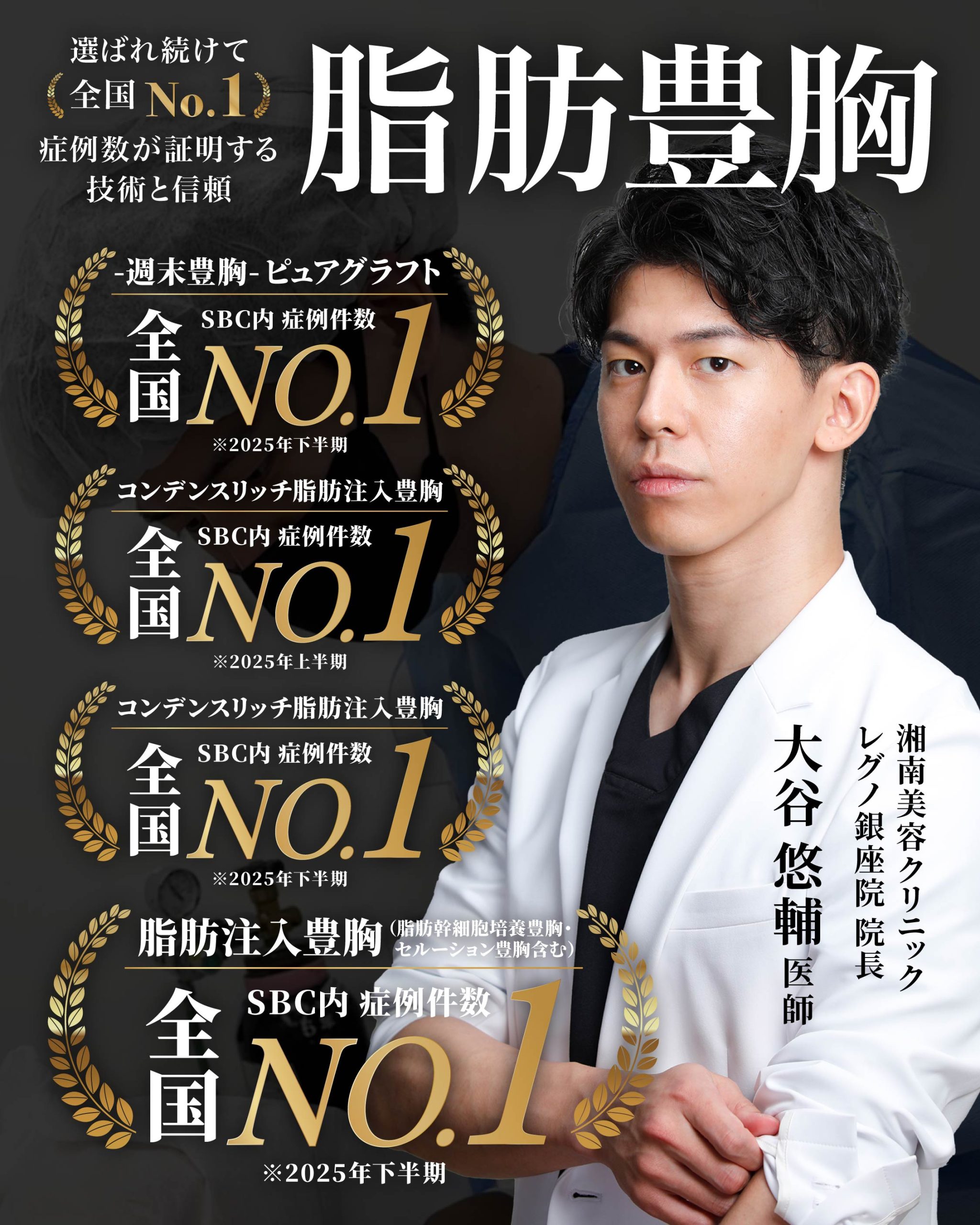 当院の院長である大谷医師は脂肪注入豊胸の症例件数 全国No.1※の医師ですので、経験豊富な大谷医師へぜひご相談ください。