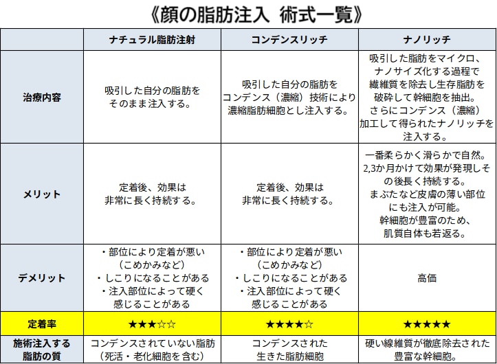 湘南美容クリニック内でも顔の脂肪注入の術式は3つあります💡