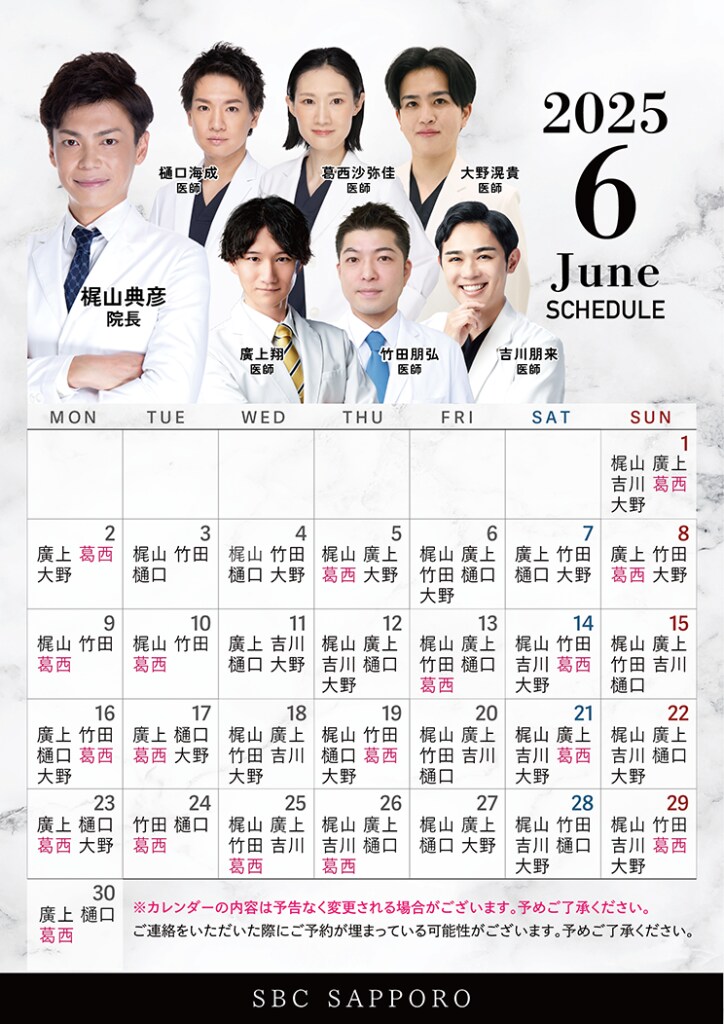 【SBC札幌院】🆕5月&6月の医師カレンダー更新🎏🌈