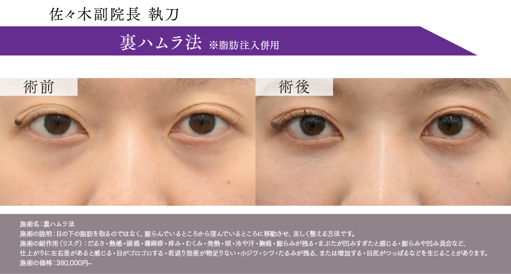 ※アイバックリムーブ、切開ハムラ法は対象外となります。