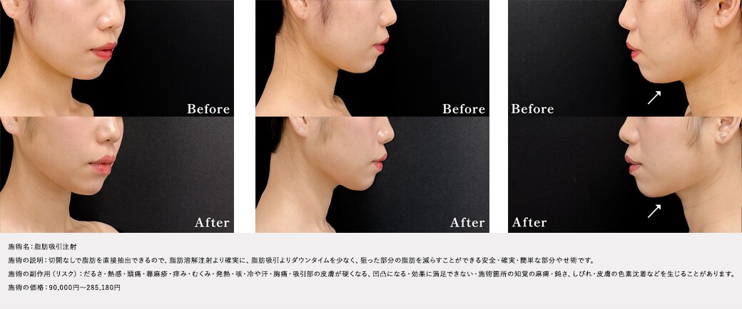 今回、あご下の余分な脂肪をピンポイントで除去したことで、骨格の美しさが際立ち、横顔のEラインが非常に綺麗に整いました。