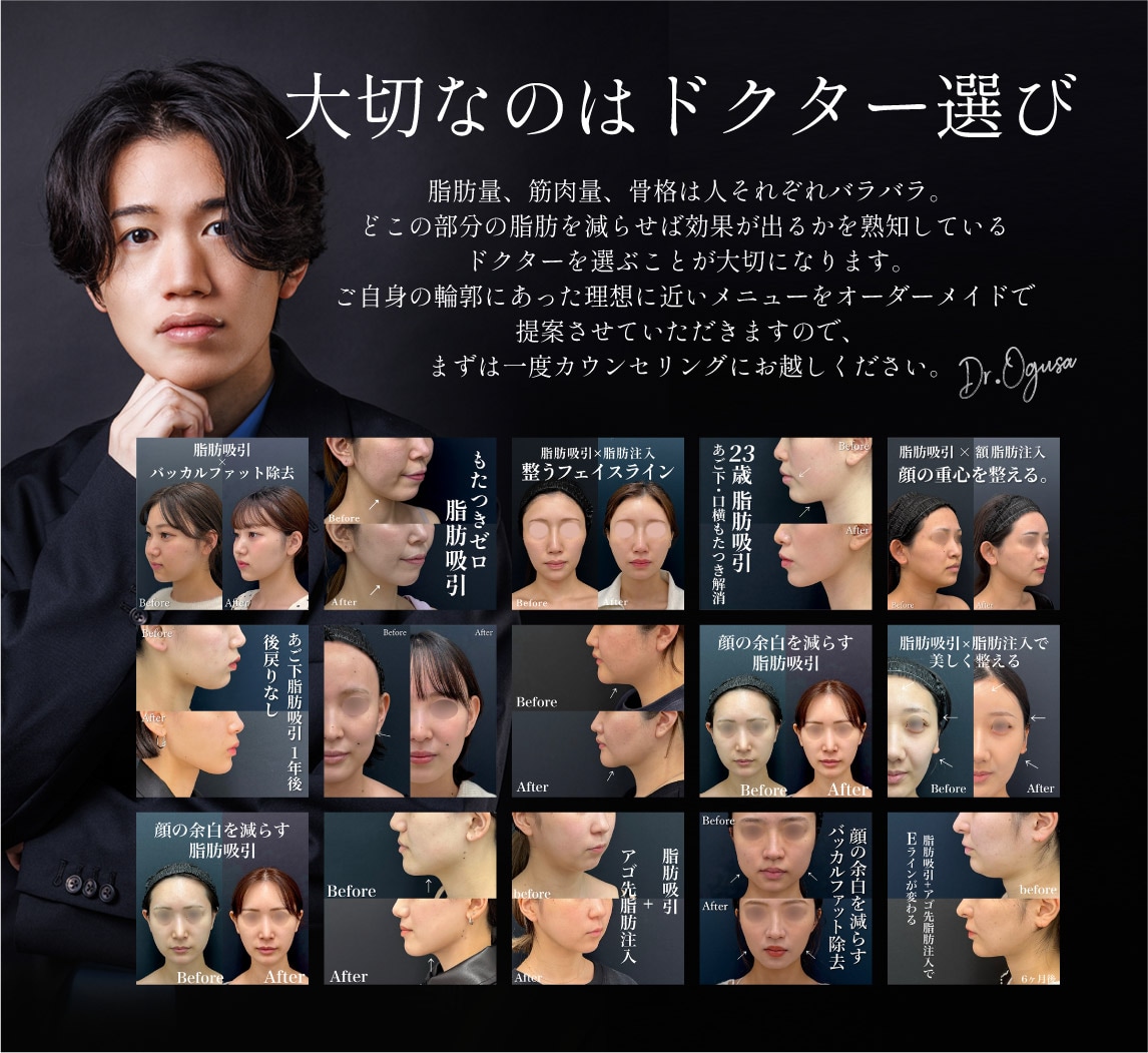 「取るべき脂肪・とってはいけない脂肪」を見極め、将来的なたるみが出ないよう計算してデザインできる医師を選びましょう。